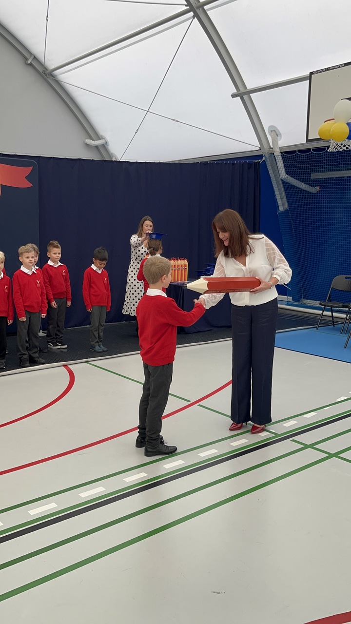 Po uroczystym ślubowaniu Dyrektor szkoły dokonał aktu pasowania na ucznia, a na zakończenie uczniowie otrzymali pamiątkowe książki oraz kredki wypełnione słodkimi niespodziankami.