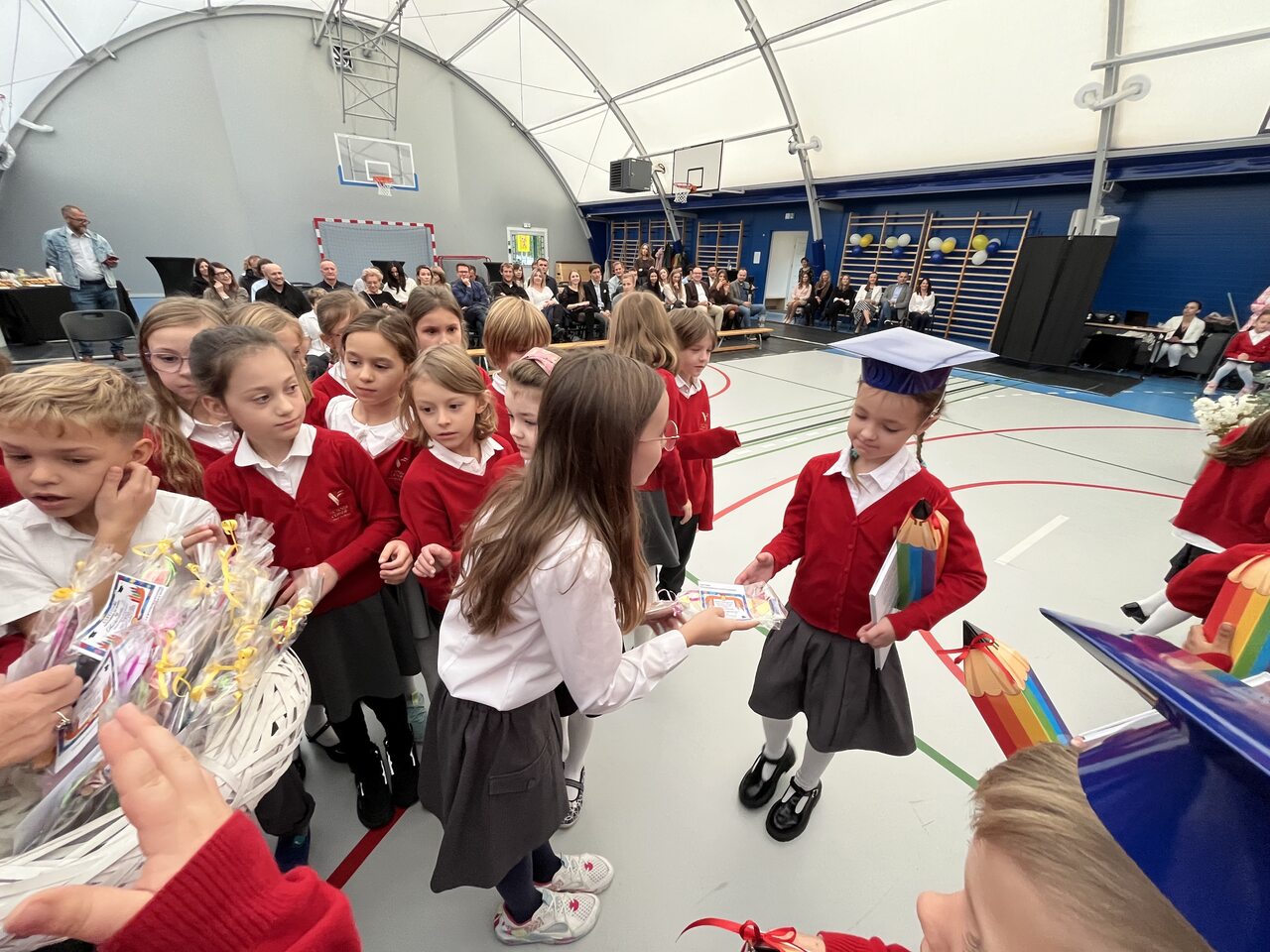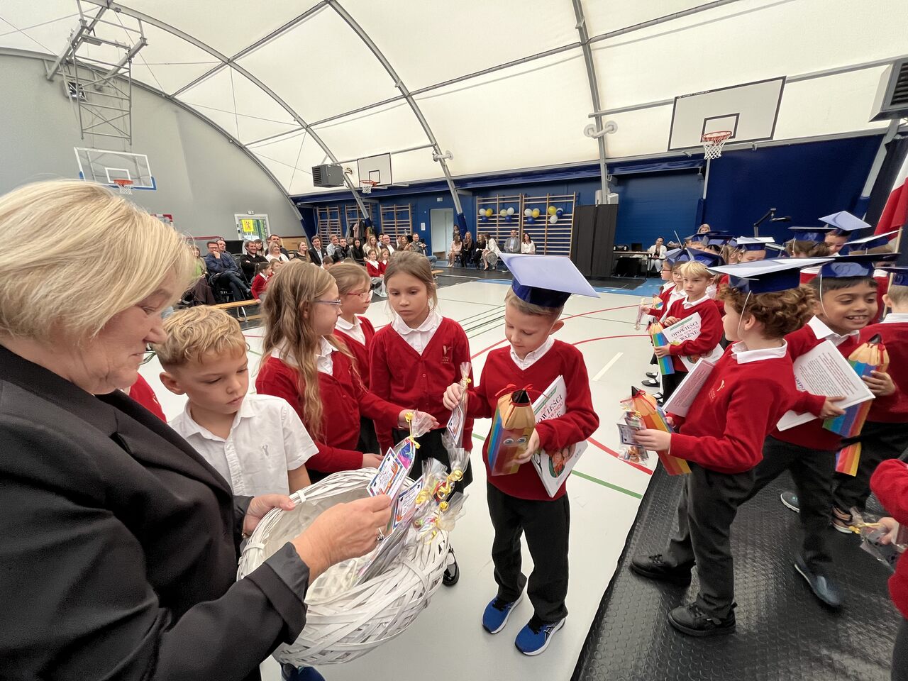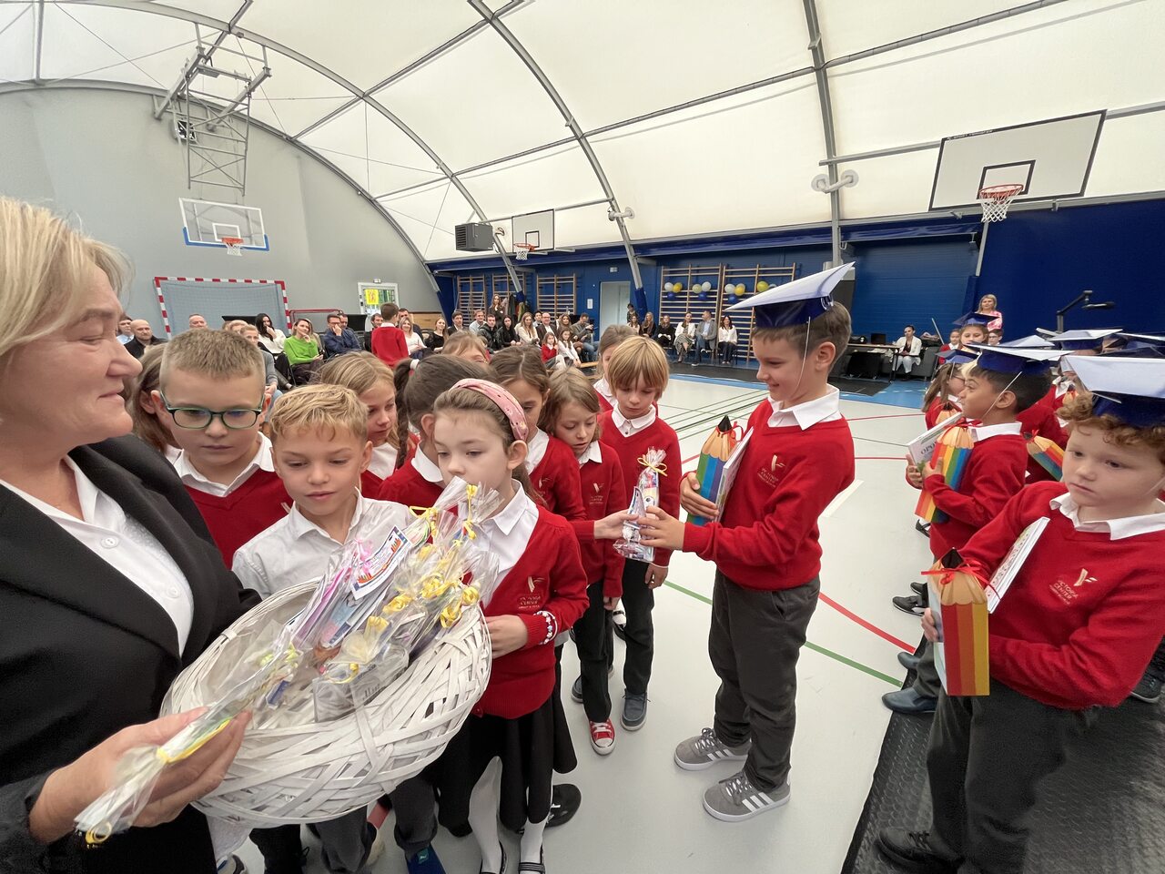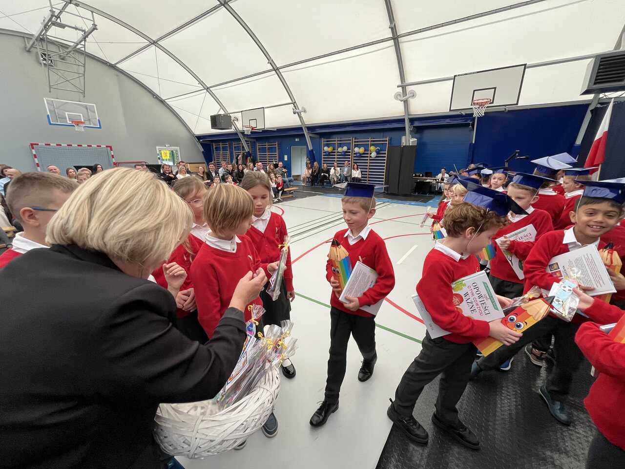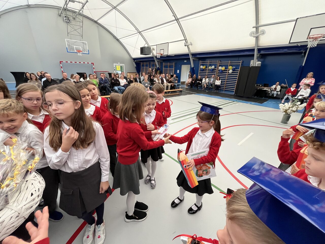 Pierwszoklasiści, mimo lekkiej tremy, zaprezentowali krótkie przedstawienie, w którym udowodnili, że są gotowi do nauki i życia w szkolnej społeczności. Występ pełen był radości, śpiewu, tańca i uśmiechów, a widownia nagrodziła młodych artystów gromkimi brawami.